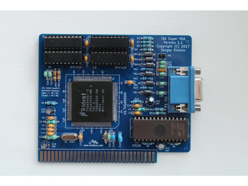 The ISA Super VGA card designed by Sergey Kiselev is based on the Trident TVGA9000i Super VGA controller IC.