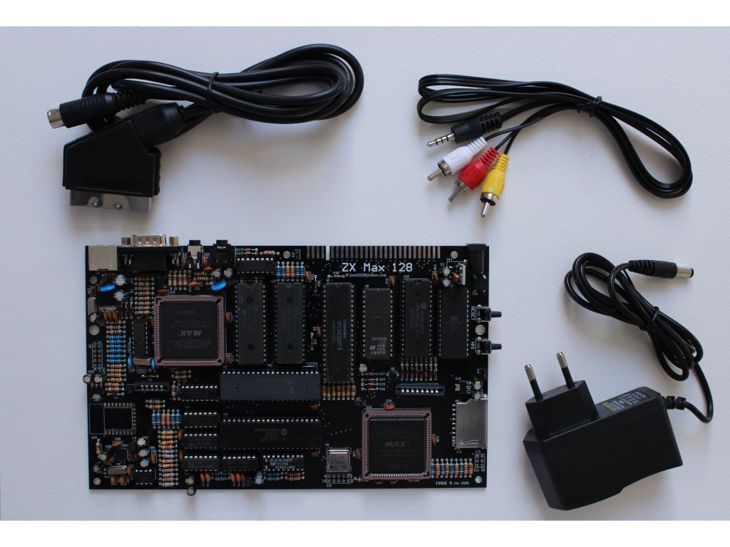 you will receive fully assembled and tested ZX MAX 128 issue 5 mainboard, AV cable, RGB to SCART cable and 12V/1A power supply.